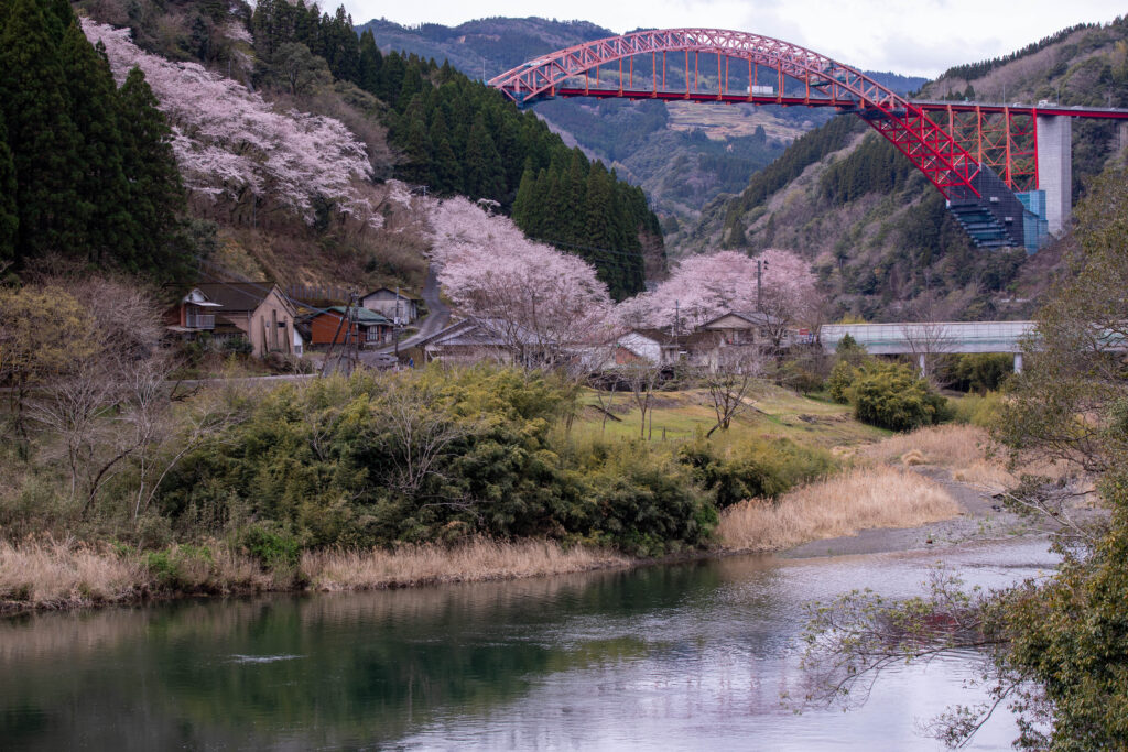 早日渡の桜並木と干支大橋